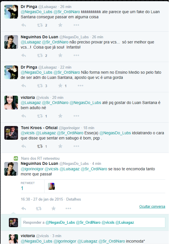 Durante a tarde de Terça-Feira (27), por volta das 16 horas, alguns jogadores do Real Madruga entraram em uma briga via twitter com uma fã de Luan Santana. As ofensas foram frenéticas, durando cerca de uma hora, só parando por desistencia da fã do baitola. Até uma amiga dos jogadores (@vicsls) , não resistiu e partiu também para a zuação.